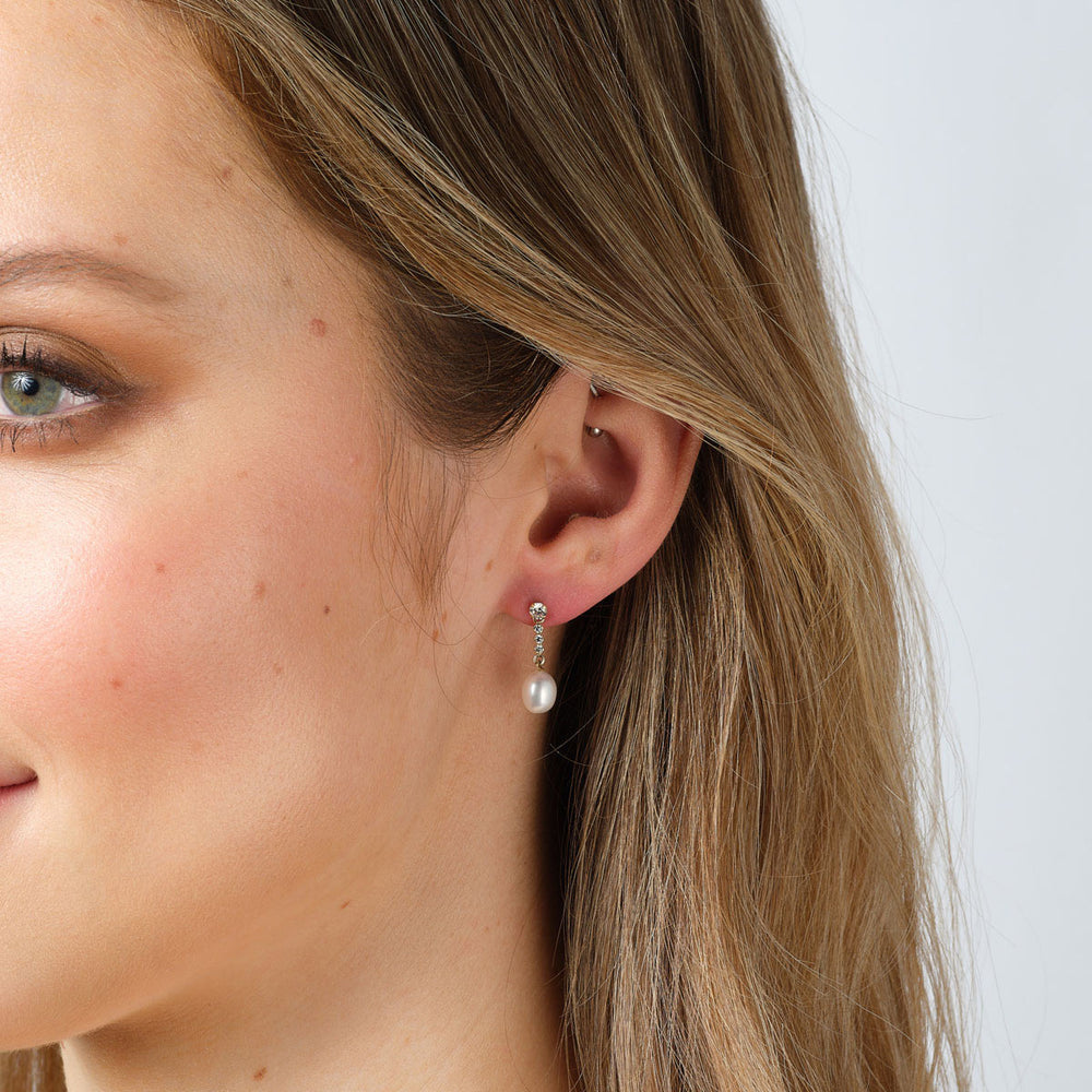 White Gold Cubic Zirconia Pearl Drop Earrings